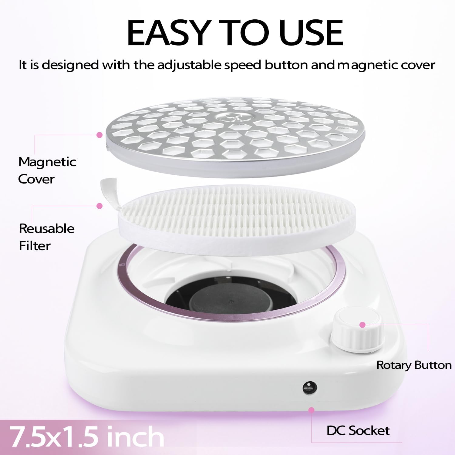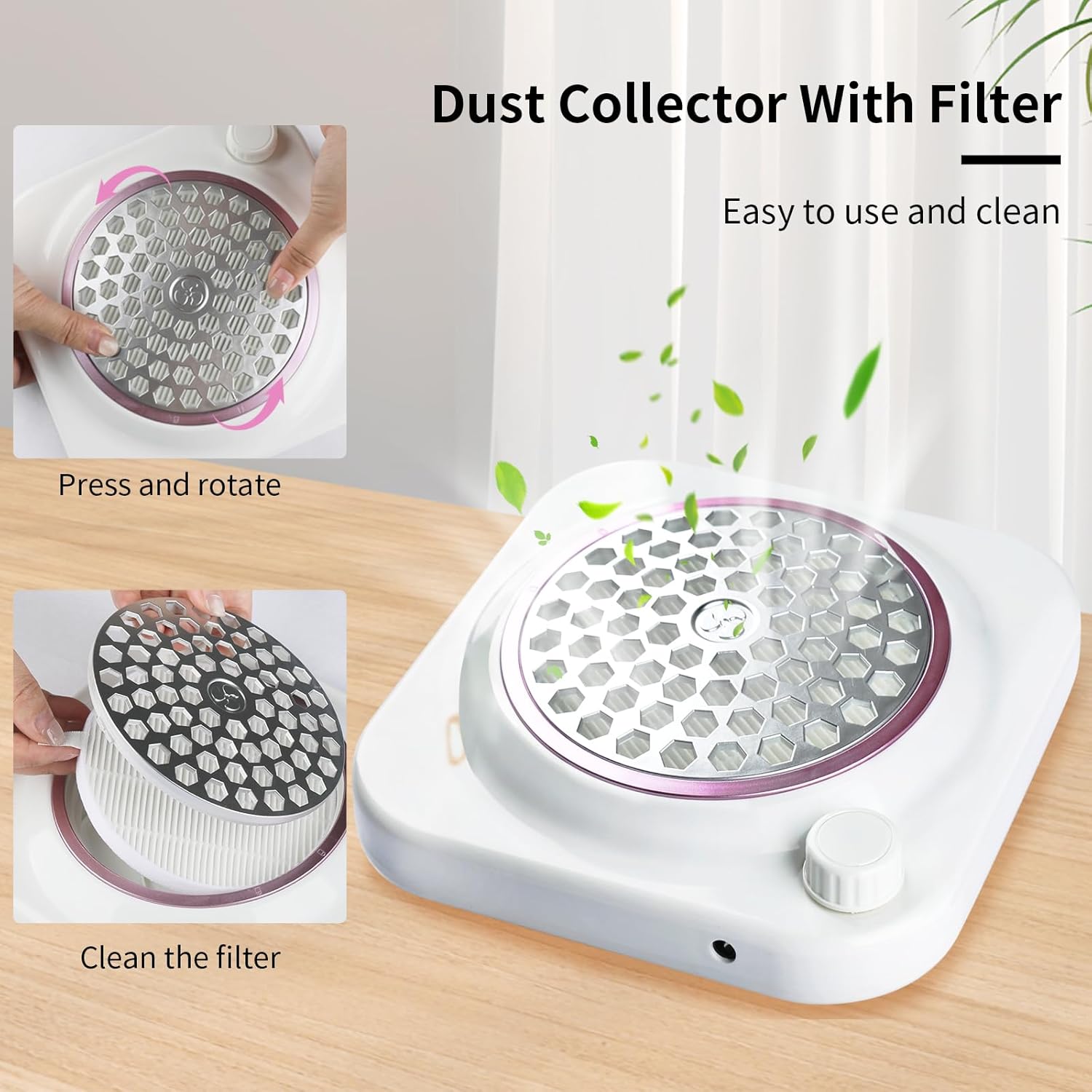 Equipped with a high-quality filter, this electric dust suction machine effectively removes dust and debris from your workspace, ensuring a clean and hygienic environment. The compact and sleek design of this nail dust collector makes it easy to transport and store, while the durable construction guarantees long-lasting performance.