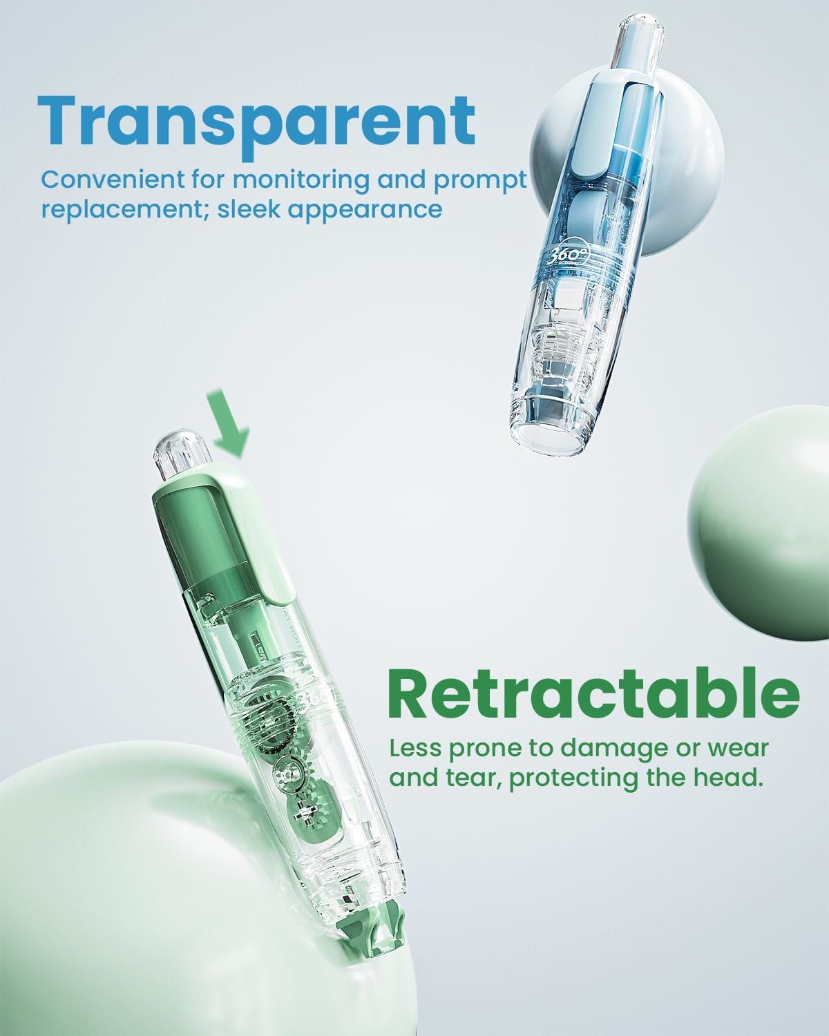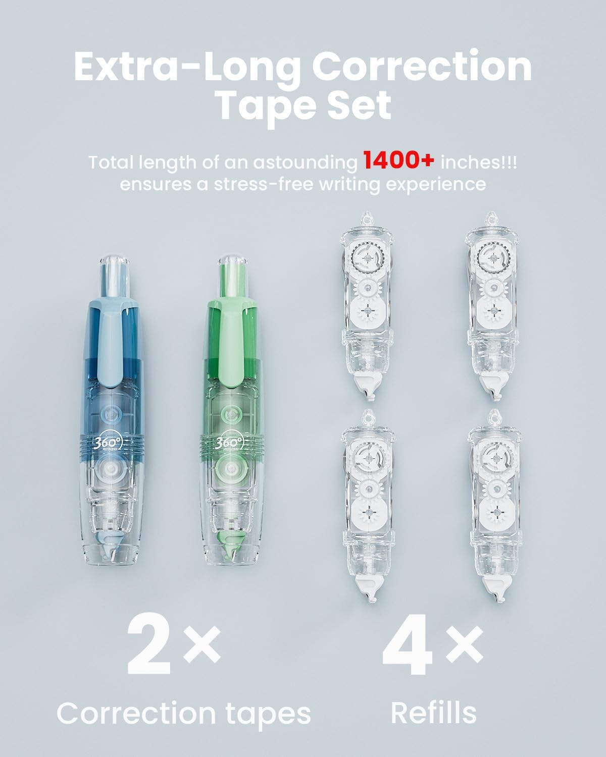 Refillable Retractable White Out Correction Tape, 2PCS Cute White Out with 4 Extra Refills, Easy to Use Mini Aesthetic Pen Shaped Applicator for School Office Supplies (Blue Green)