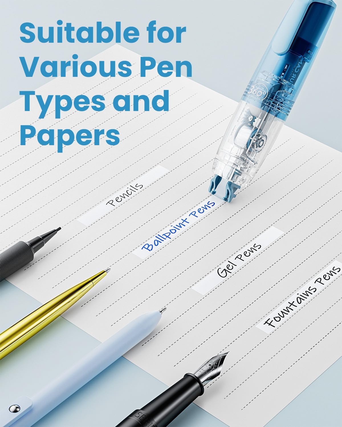 Designed with a mini aesthetic pen-shaped applicator, these correction tapes are easy to use and ideal for school or office supplies. Simply retract the tape for convenient storage and twist the top to dispense precise corrections with ease.