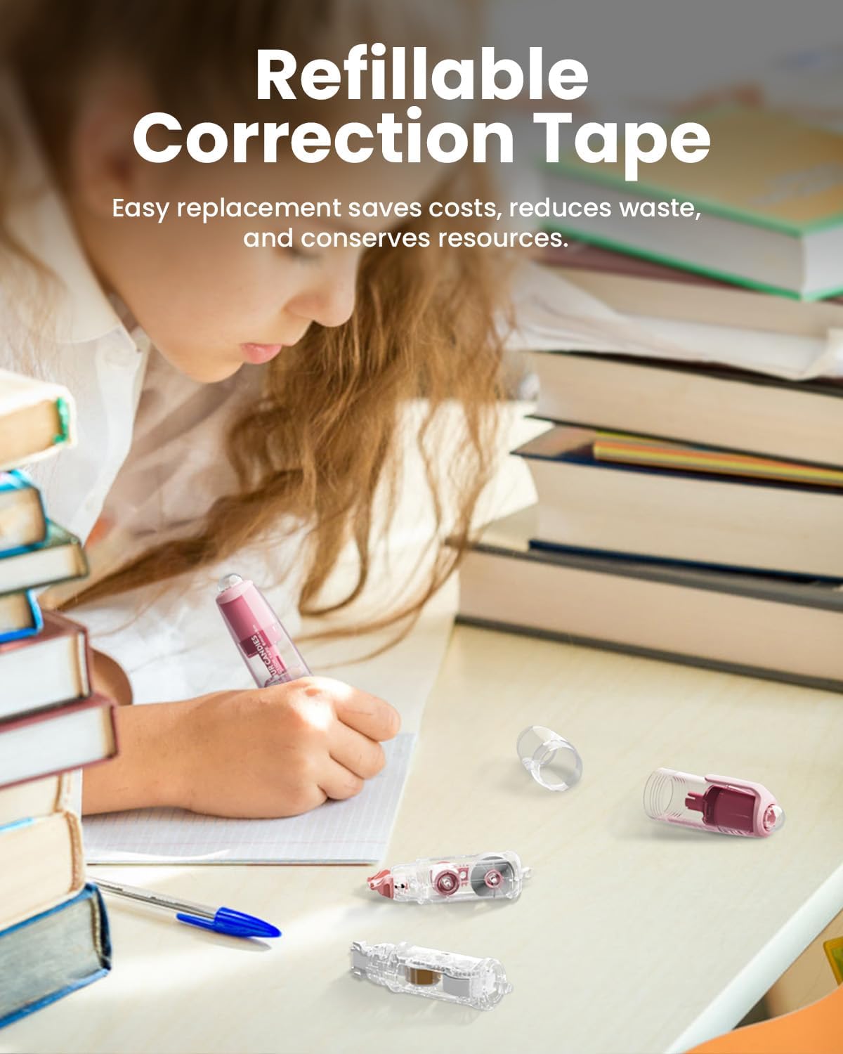 Say goodbye to messy liquid white out and hello to clean, precise corrections with our Refillable Retractable White Out Correction Tape. Add this must-have tool to your stationery collection today!